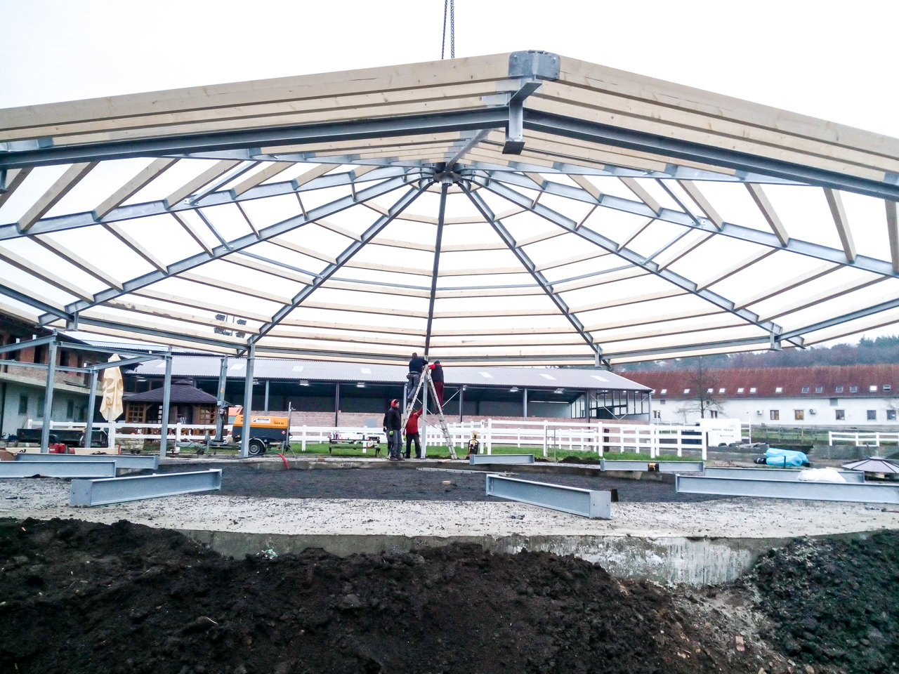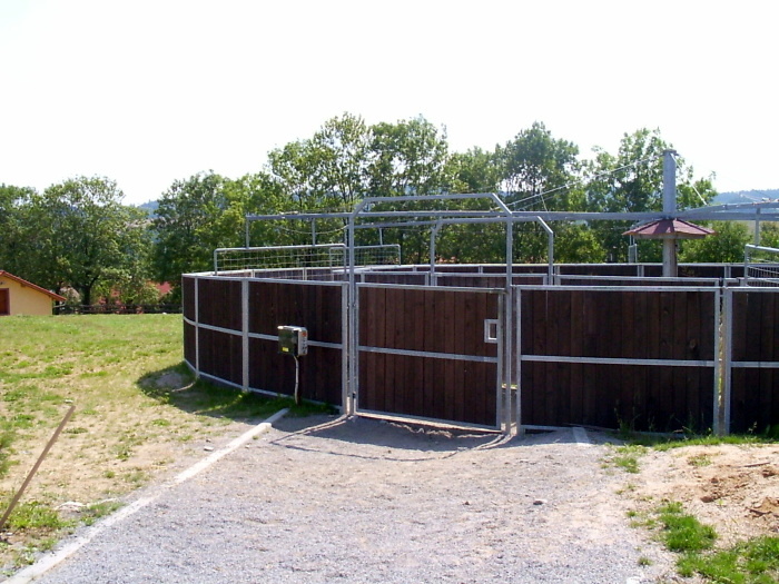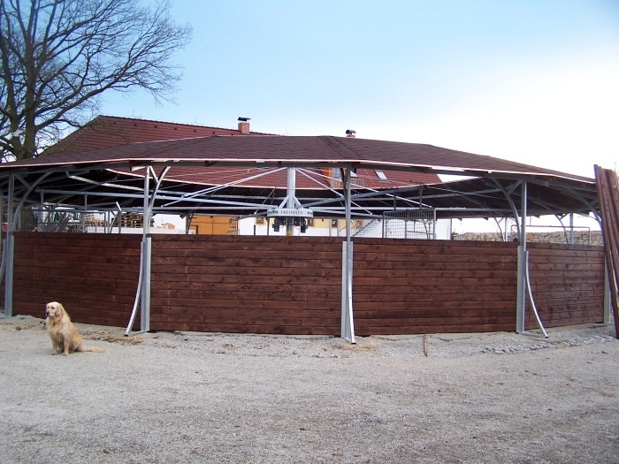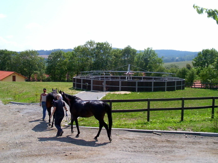V loňském roce jsme realizovali první projekt vodního kolotoče v České republice. Koně se v tomto zařízení pohybuji v bazénu s vodou. Výška hladiny složení a teplota vody umožňuje provádět trenink i rehabilitaci koní.