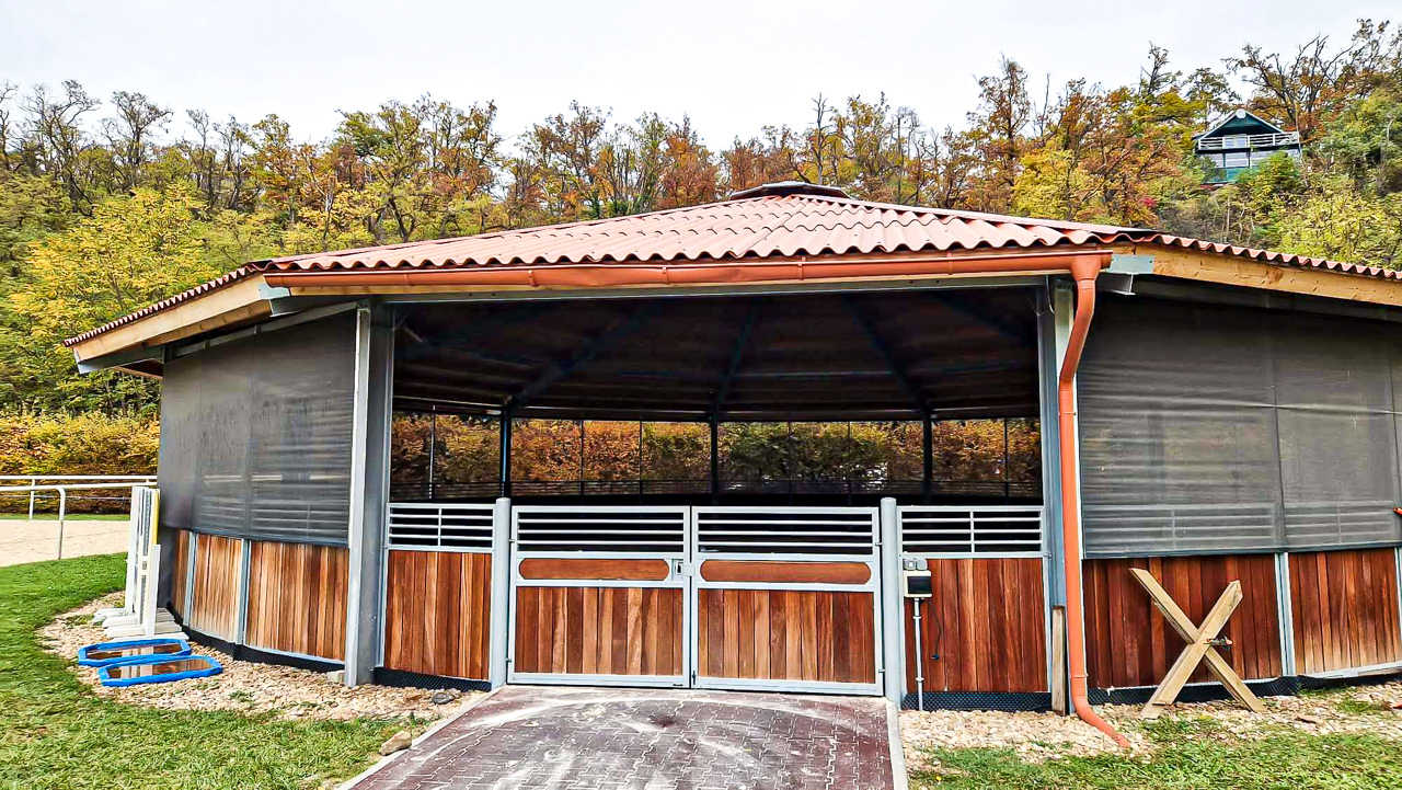 Venkovní boxy je možné jednoduše začlenit již do stávajích staveb nebo vytvořit nové komplexy díky důmyslnému stavebnicovému systému. Boxy mohou být uzpůsobeny jako sedlovny, mycí boxy, sklady atd. Kontrukce boxu je z ocelové pozinkované konstrukce doplněné masivně zpracovanými stěnami z dubových fošen. Díky izolovaným vazníkům a střešnímu plášti jsou ideální pro celoroční ustájení. Barvu střešní krytiny je možné vybrat s široké palety barevných odstínů.